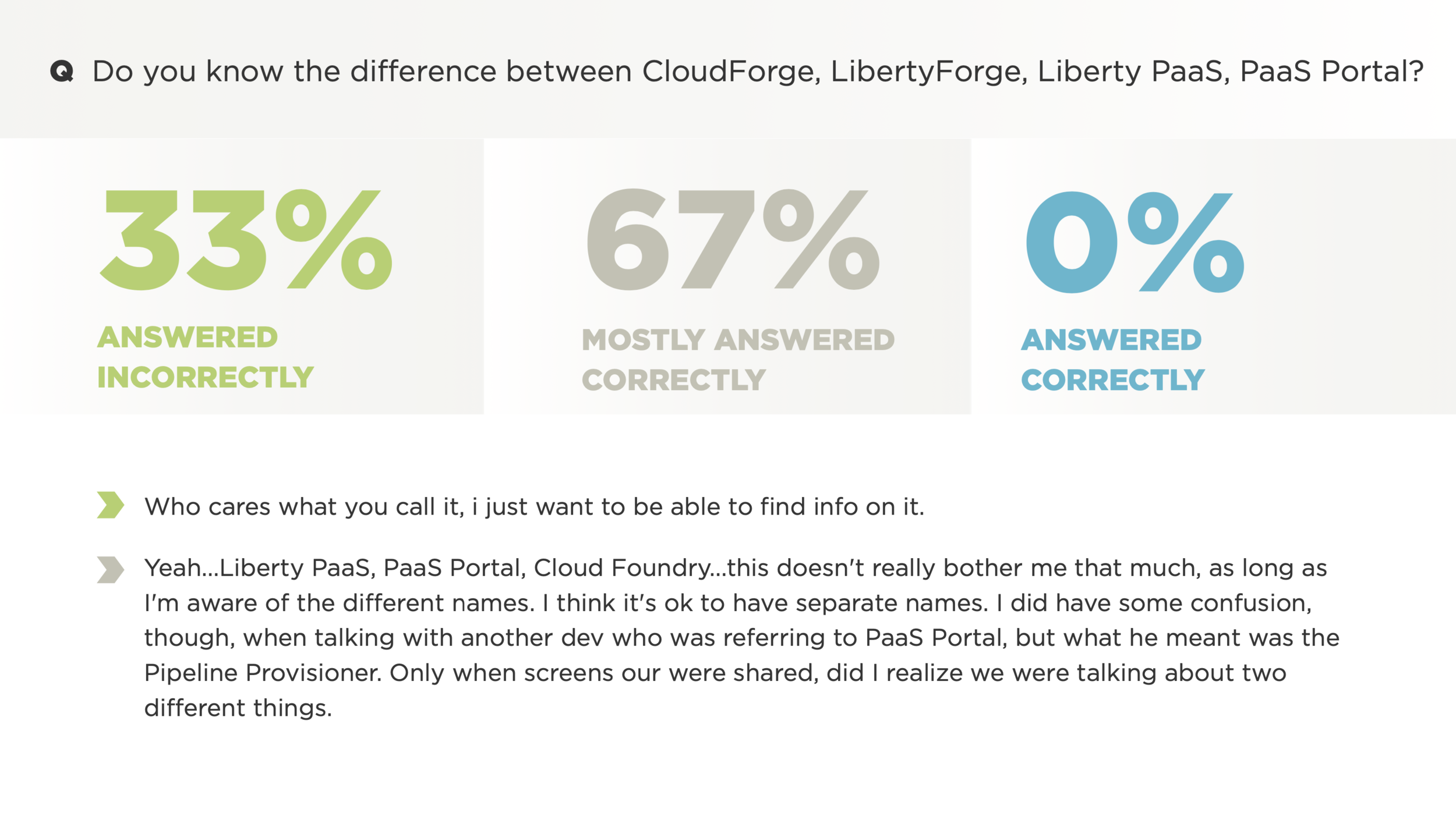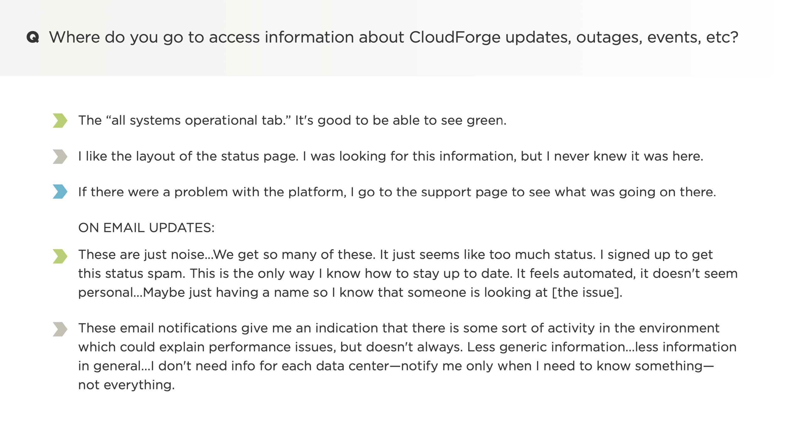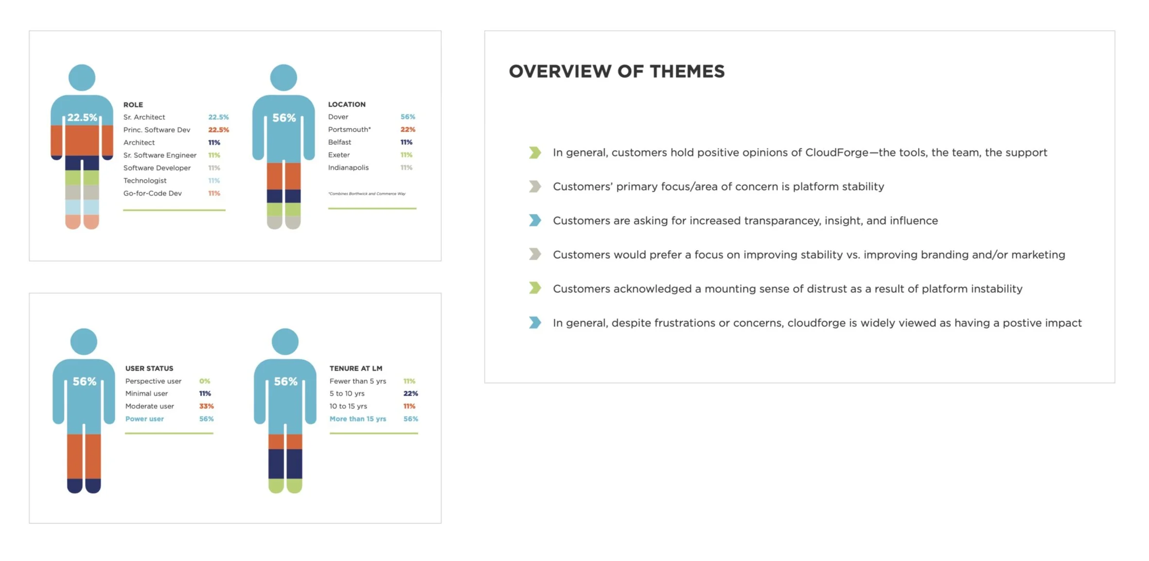 In order to achieve its goal to increase cloud adoption and reduce tech spending, Liberty Mutual relied heavily on CloudForge—its enterprise CI/CD software development and delivery platform—to provide an easy-to-use, end-to-end experience for its development teams that would facilitate the required work. The problem? CloudForge lacked fundamental knowledge and insight into its users’ behaviors, preferences, needs, and pain points. As a result, CloudForge struggled to set priorities and build out a user-centric product strategy.