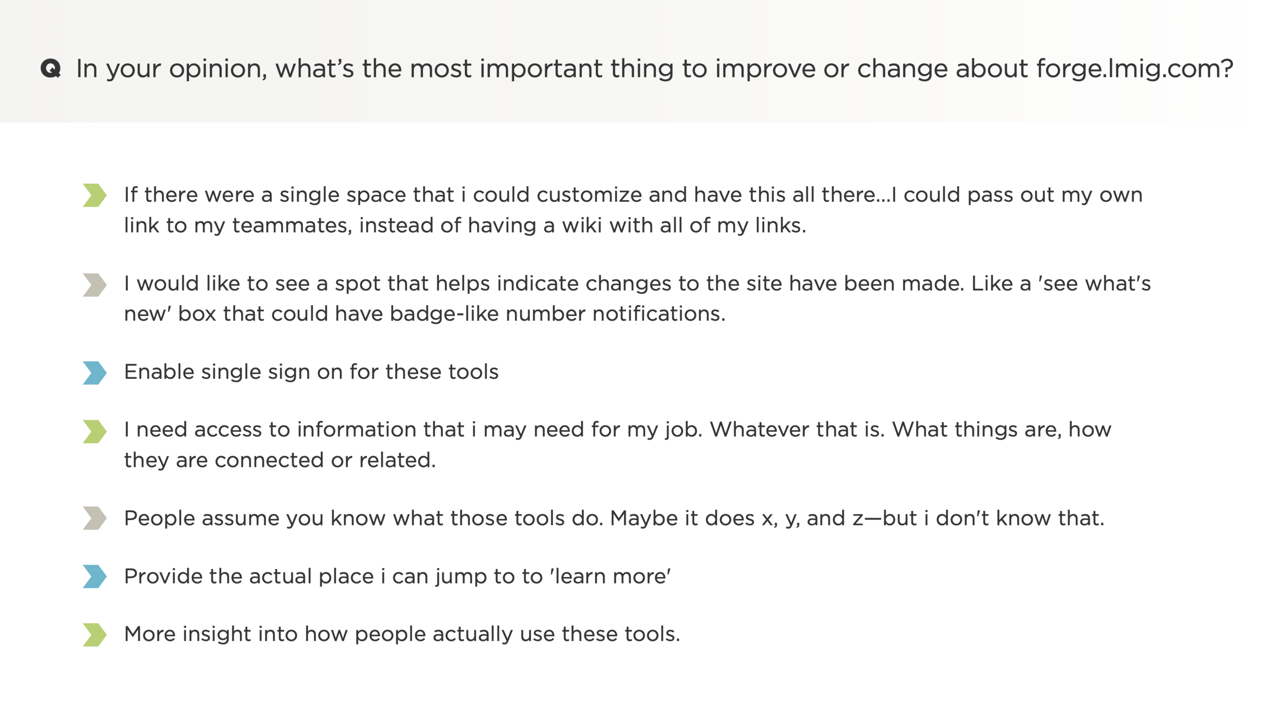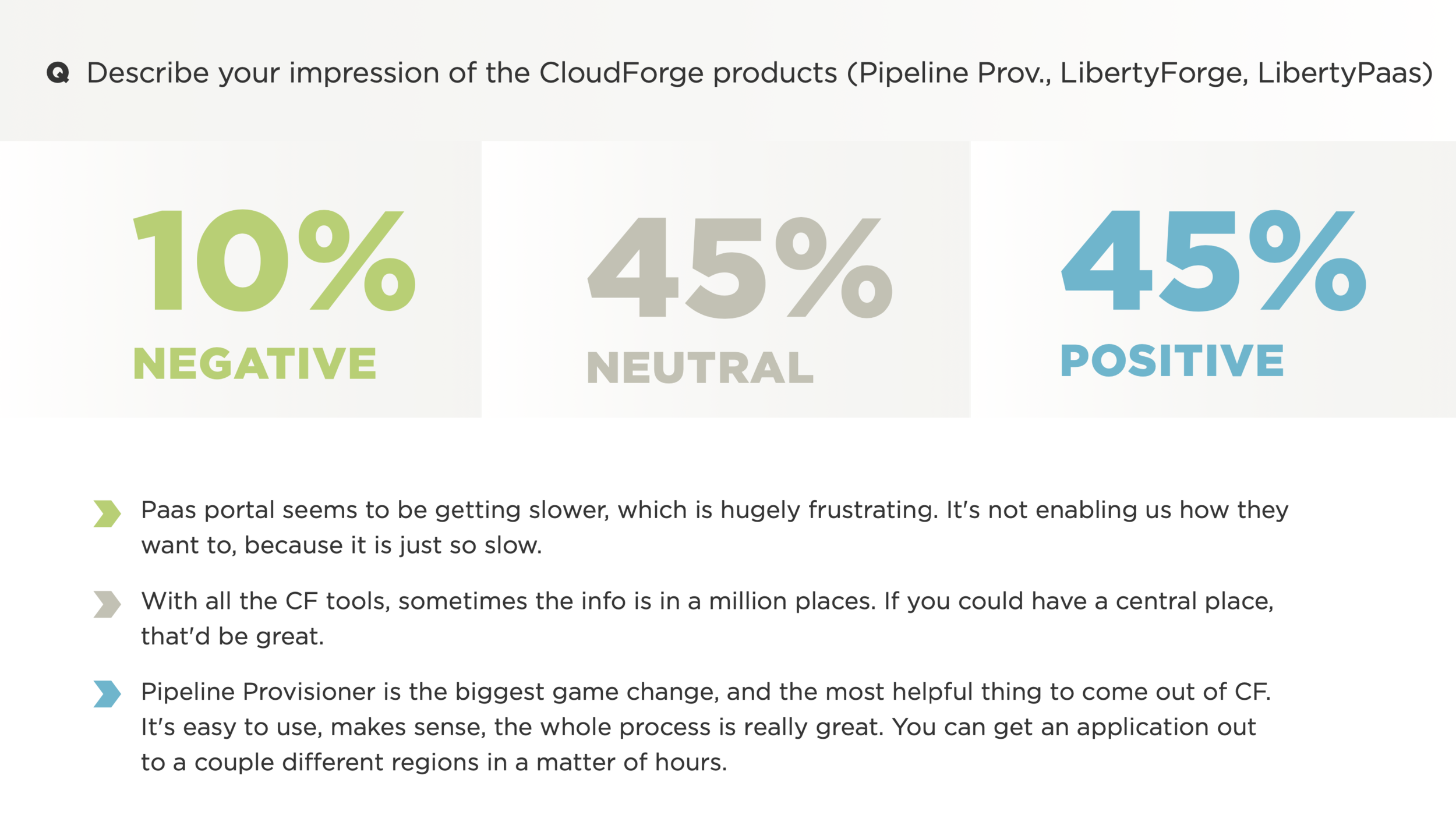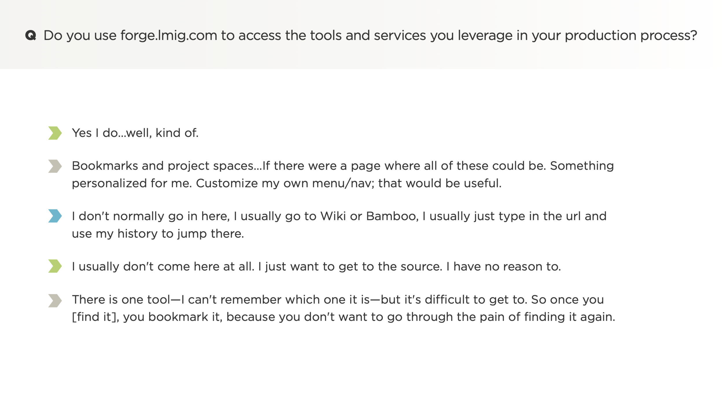 In order to achieve its goal to increase cloud adoption and reduce tech spending, Liberty Mutual relied heavily on CloudForge—its enterprise CI/CD software development and delivery platform—to provide an easy-to-use, end-to-end experience for its development teams that would facilitate the required work. The problem? CloudForge lacked fundamental knowledge and insight into its users’ behaviors, preferences, needs, and pain points. As a result, CloudForge struggled to set priorities and build out a user-centric product strategy.